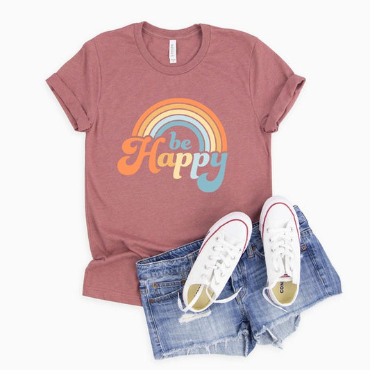 Retro Be Happy Rainbow Youth Short Sleeve Tee