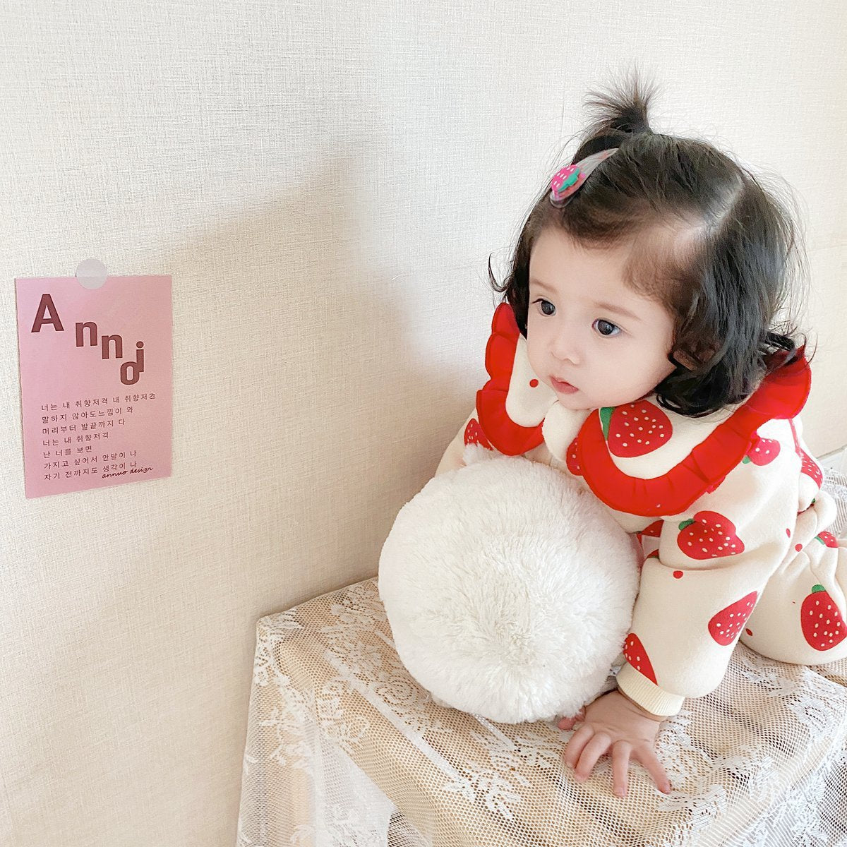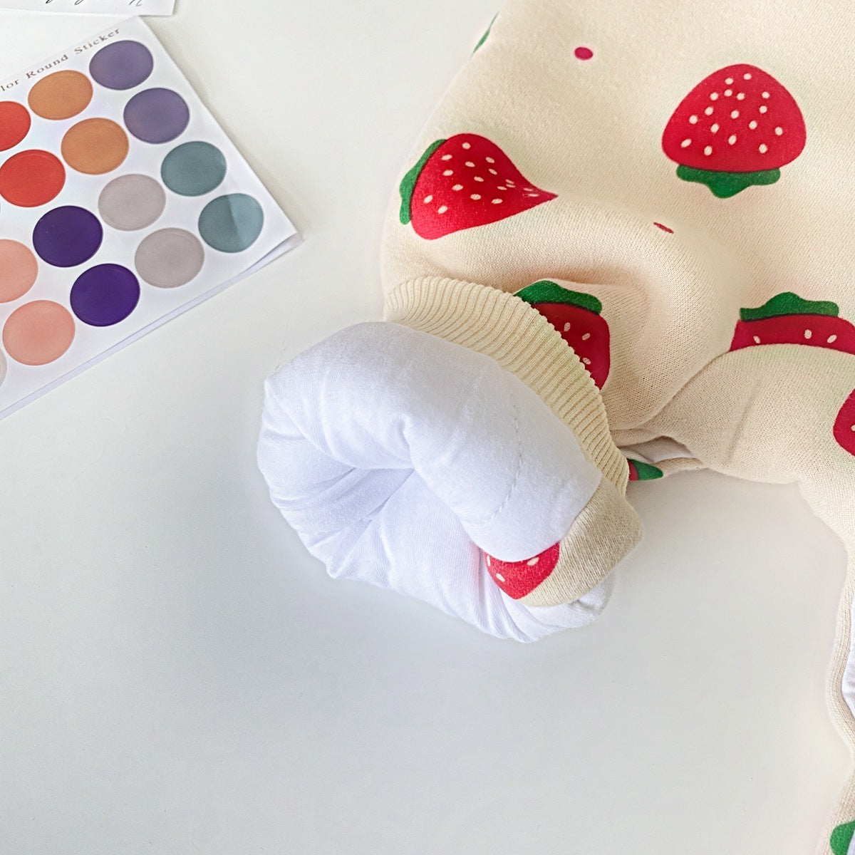 Baby Girl Warm Clothes Strawberry Printed Quilted One-piece Romper