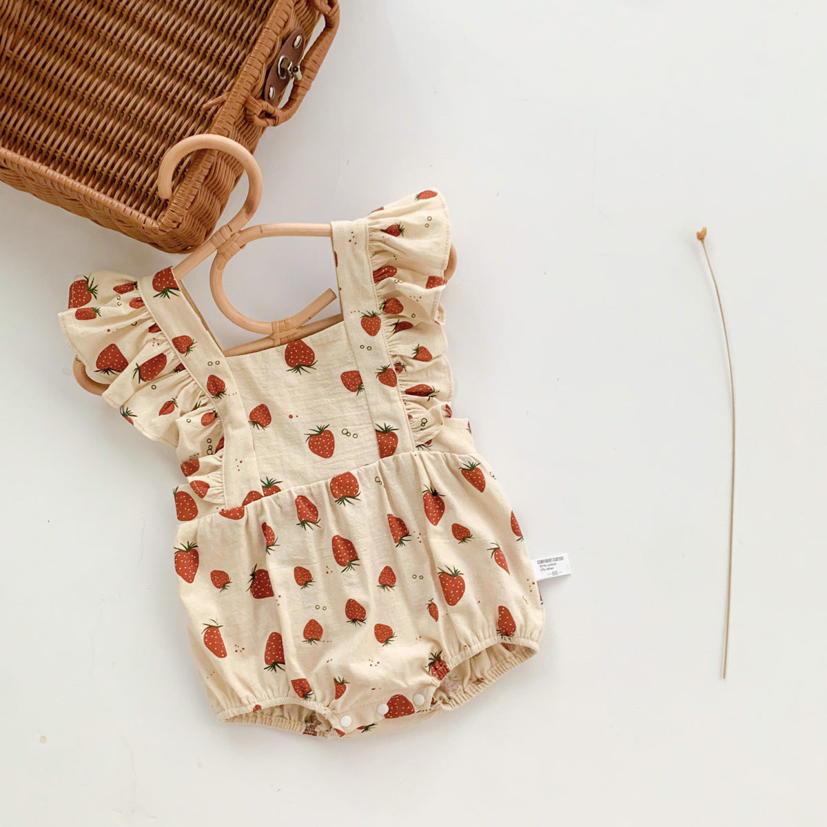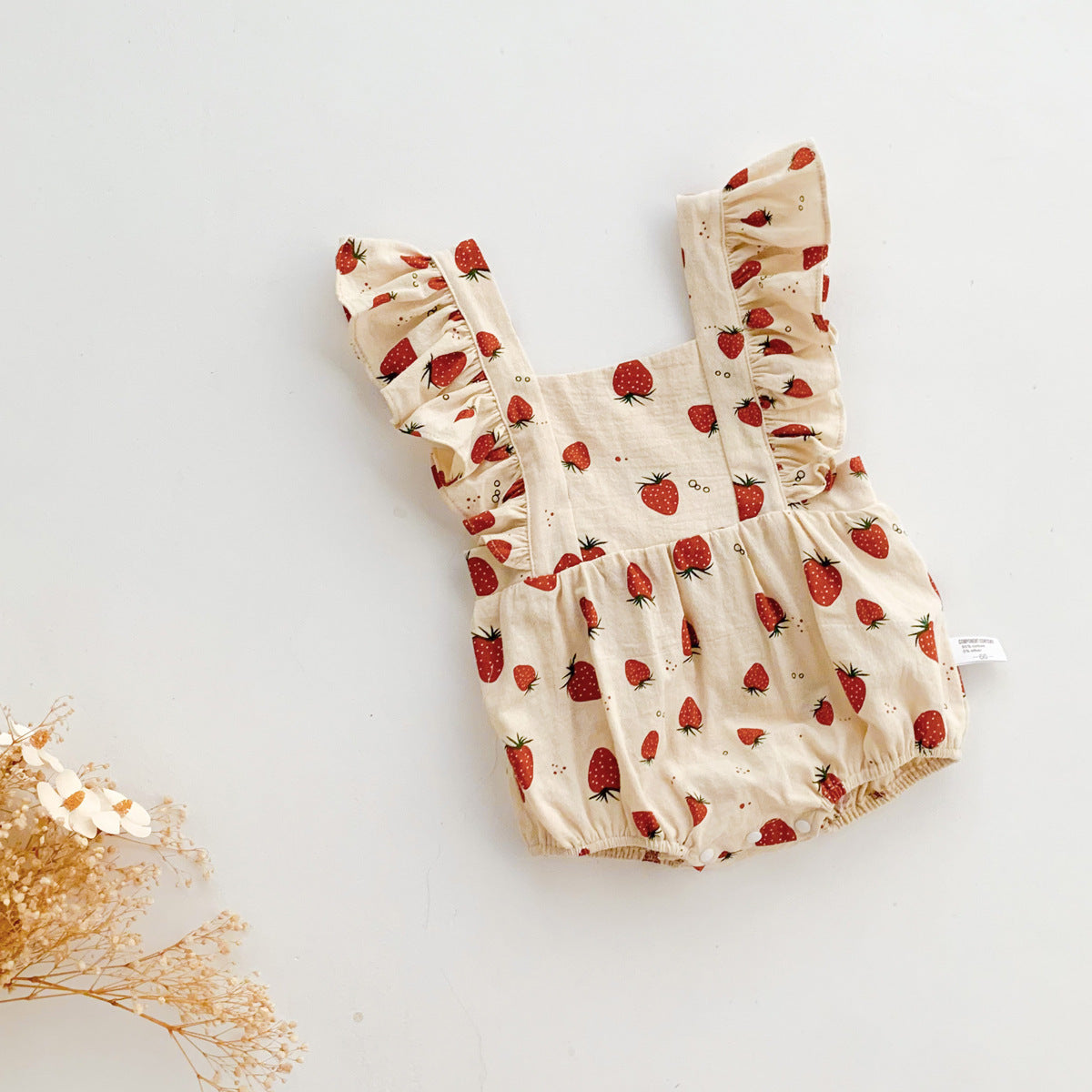 Baby Strawberry Flutter Sleeve Romper Linen Style