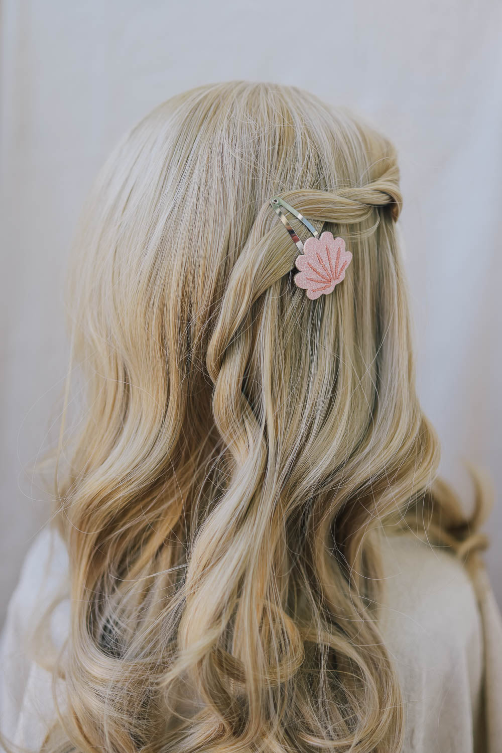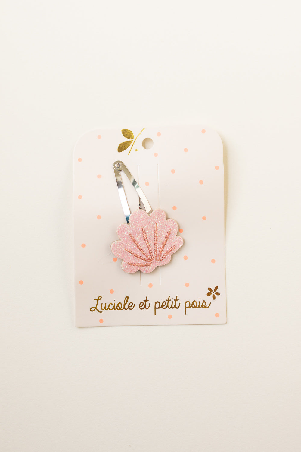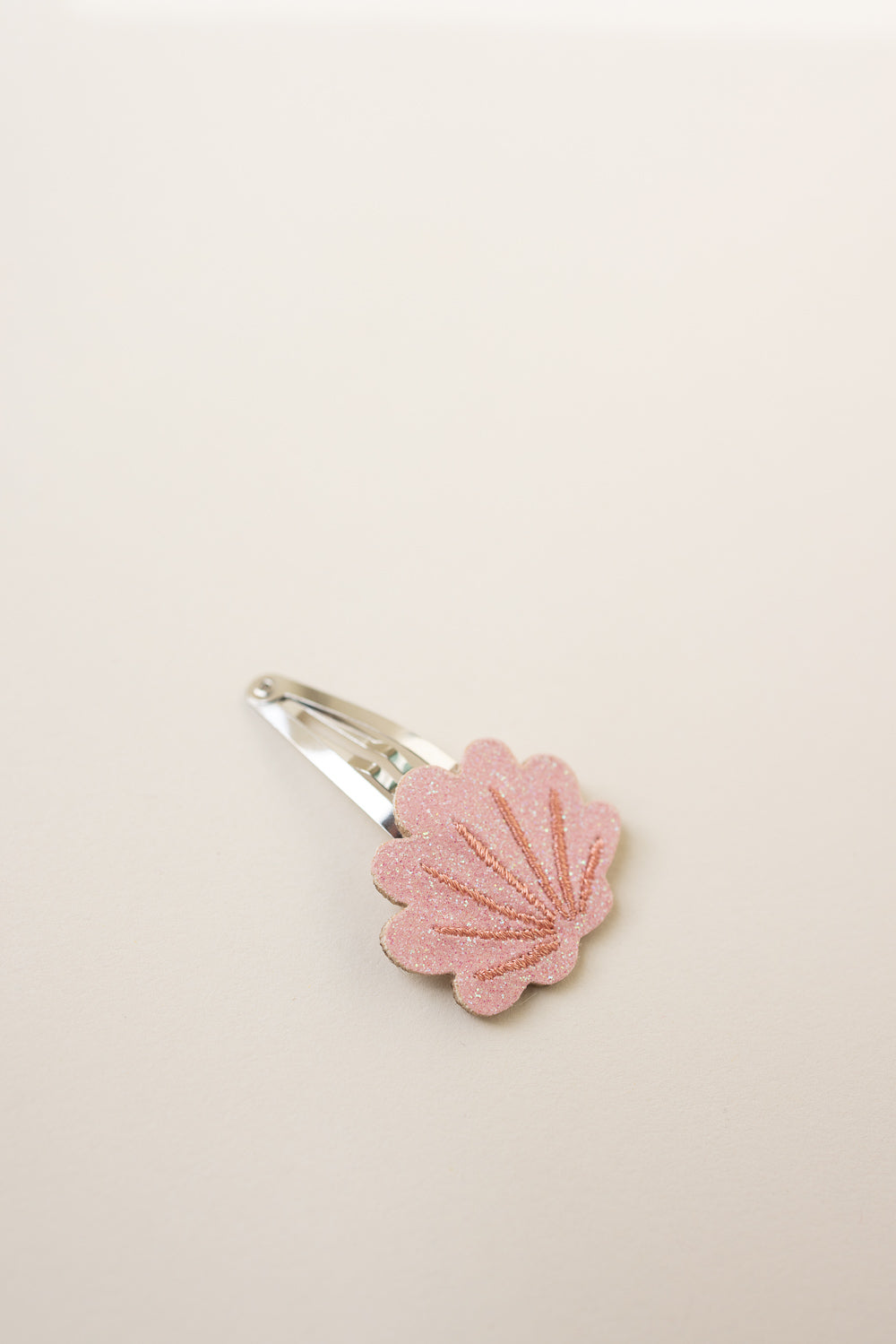Get that unique handcrafted, treasured look with this Blush Sea shell Hair clip. We love the shiny glittered soft feel, embroidered detailing and scallop design. If you're feeling inspired by the ocean, mermaids and more, come get this precious piece!