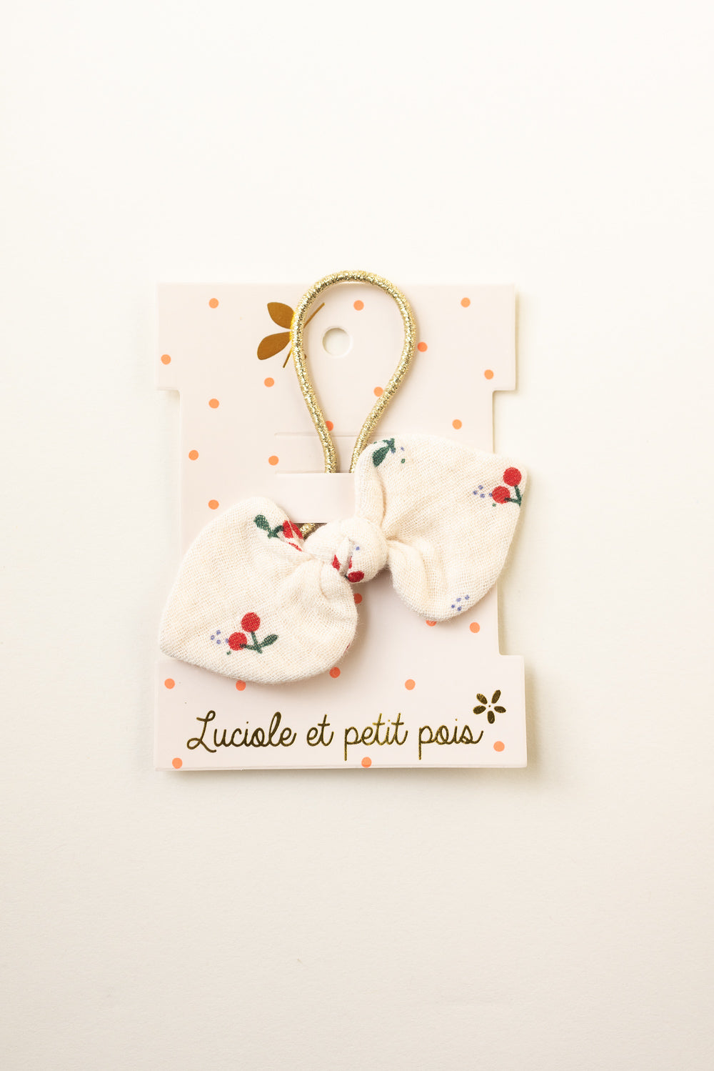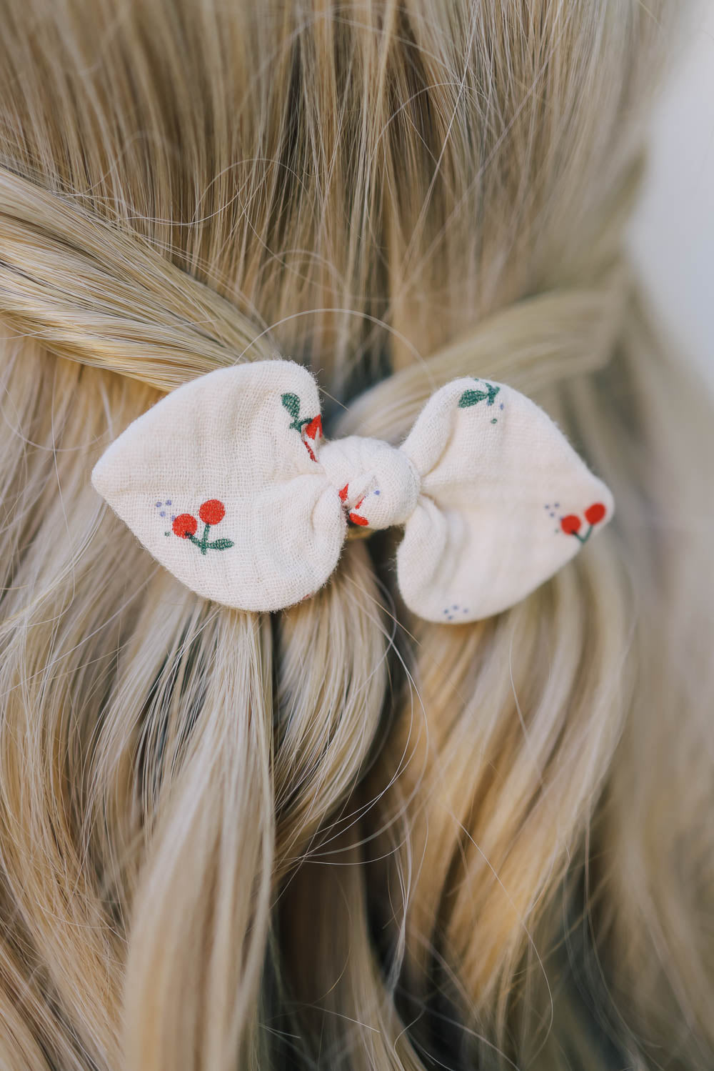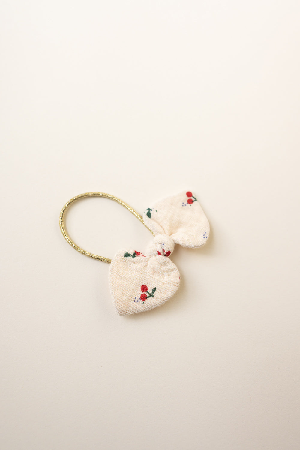 Bunny Knot Bow Cherry Print Elastic Hair Tie