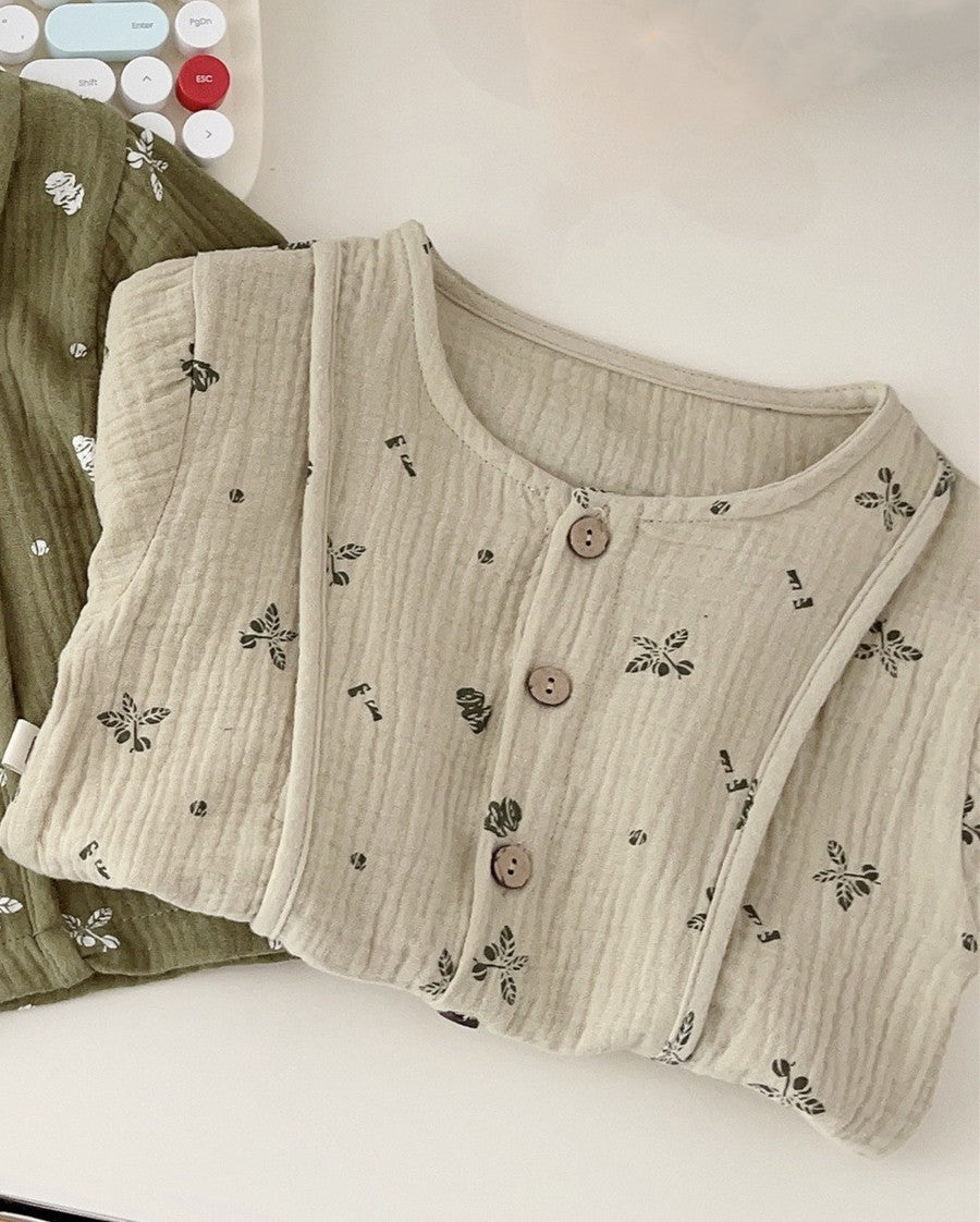 Children's Linen Style Button Sleeve Pull Over Blouse
