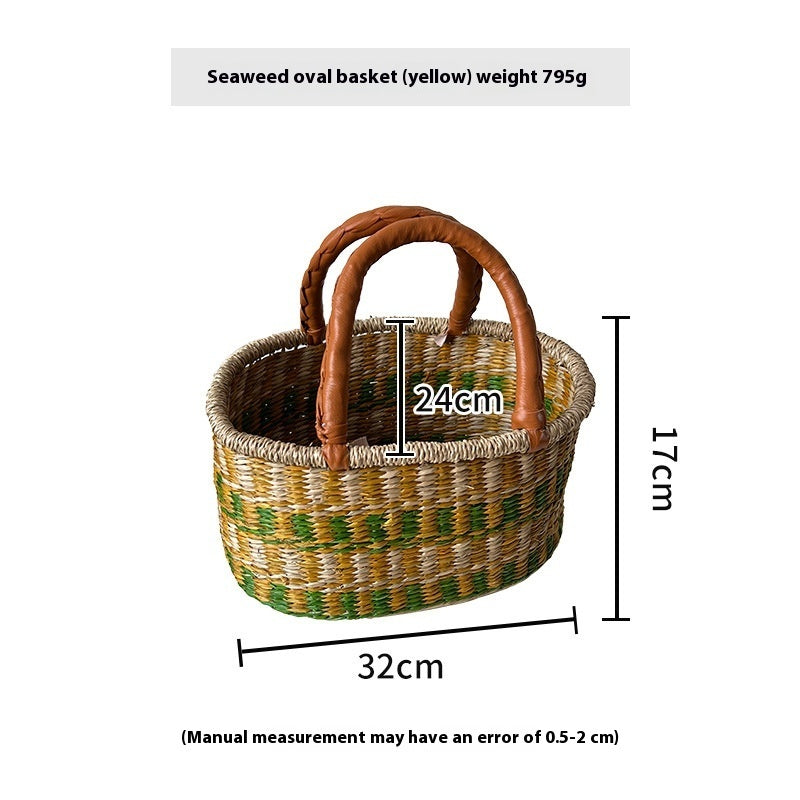 Size: seaweed round Kaba (No. 1) 25*16, seaweed round card (No. 2) 25*16, seaweed round Ka Ba (No. 3) 25*16, seaweed round Ka Ba (No. 4) 25*16, seaweed round Ka Ba (No. 5) 25*16, seaweed round double Cabas (primary color) 23*15, seaweed Oval Cabas (black stripes) 37*21*17, seaweed Oval Cabas (yellow) 32*24*17