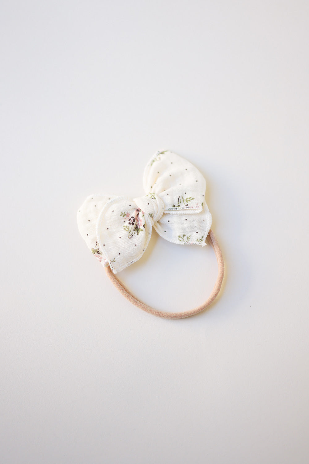Coquette Floral Dot Serged Trim Baby Head Wrap Bow