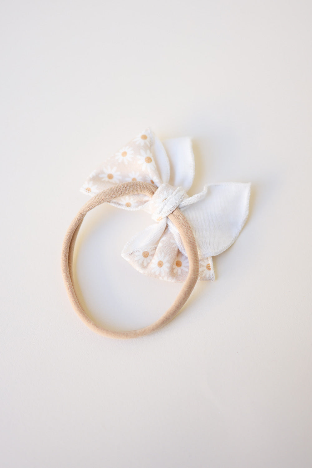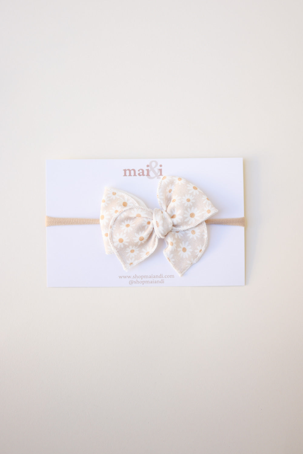 Looking for that boho, earthy, neutral and cute daisy bow for your little one? You just found it! We carry some of the fabled collection bows from Mai&I! This bow is approximately 3"by 3" with a beautiful soft nylon head wrap! You can even transition this bow into a toddler hair clip later on! Shop our precious collection!