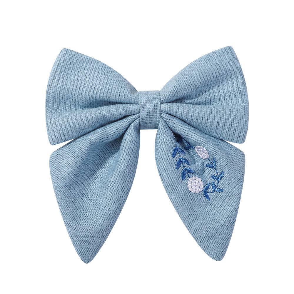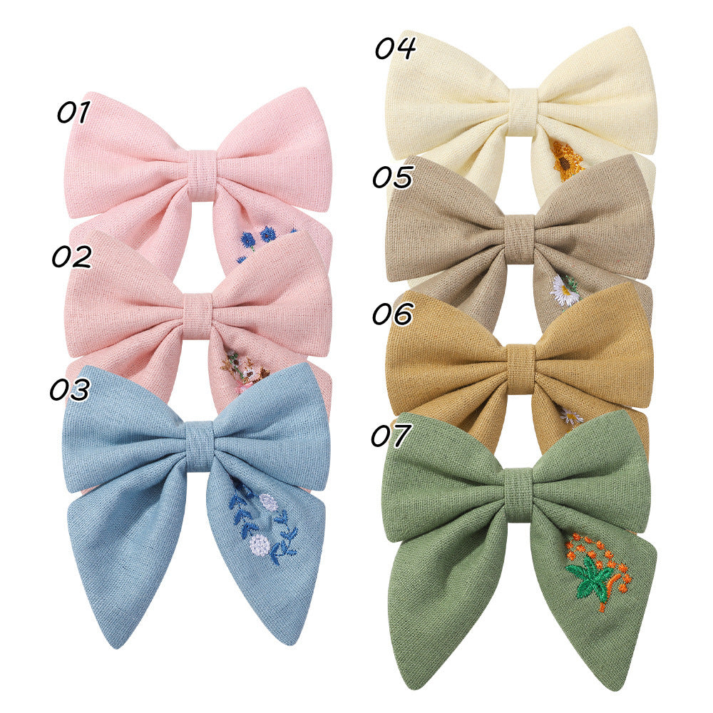 Embroidered Flower Barrettes Handmade Fabric Bow Girls Hair Accessories