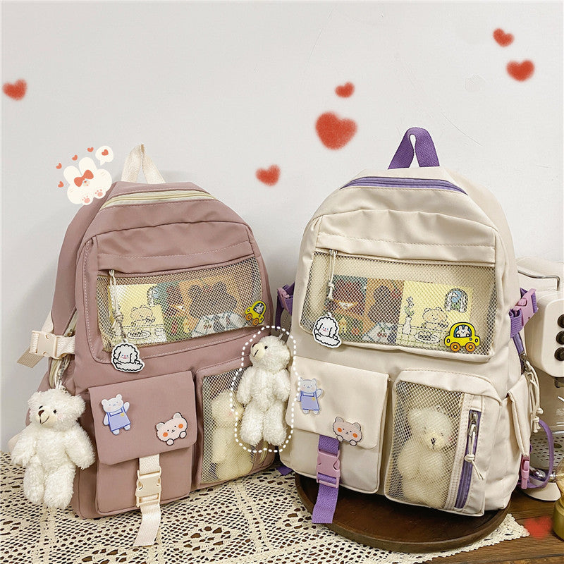 Large Capacity Backpack Multi-pocket School Bag for Pocket Charms and Mini Fur plushie
