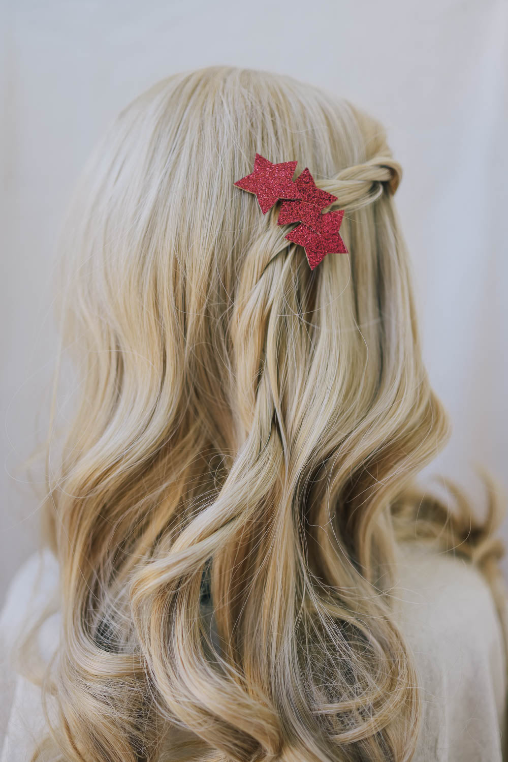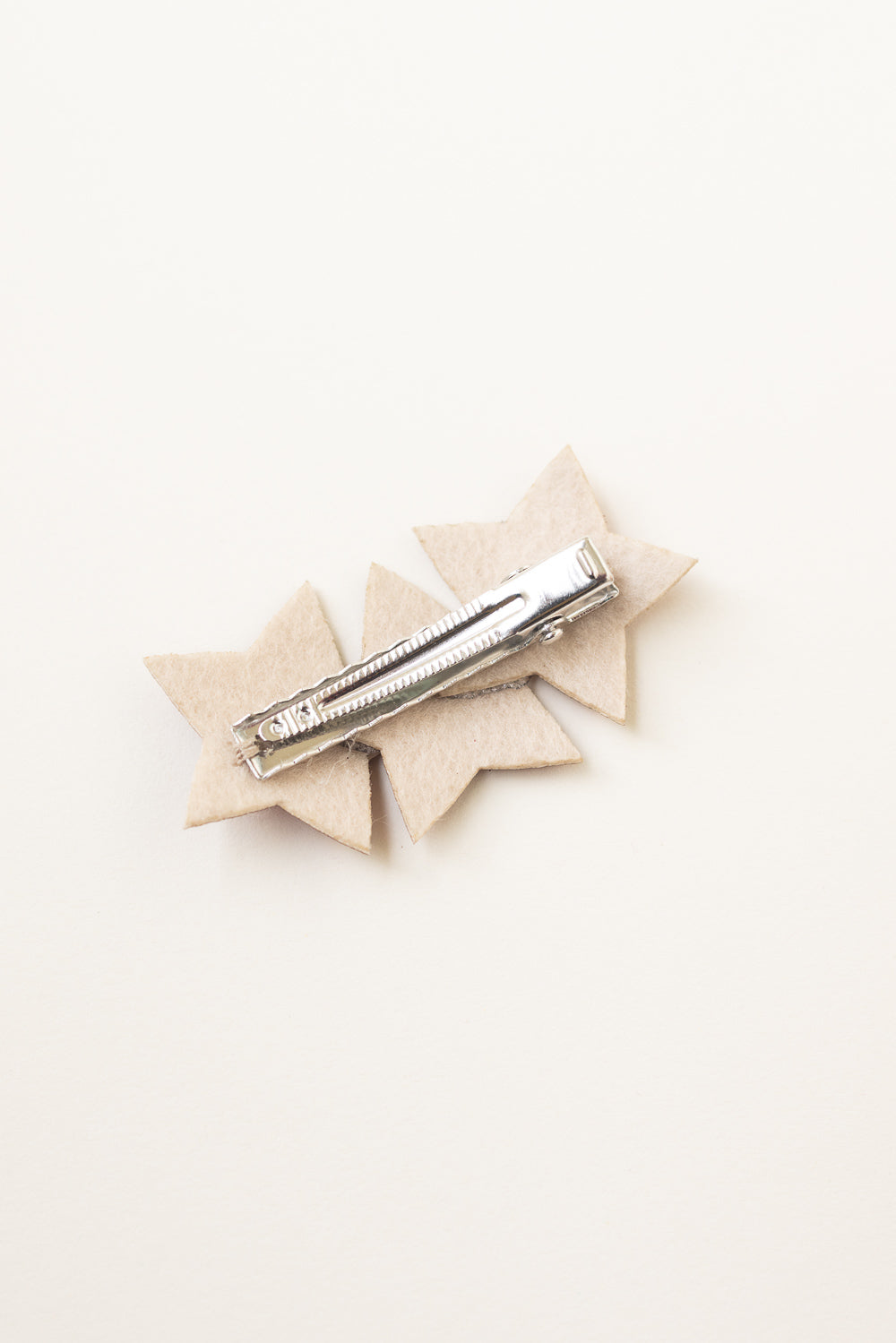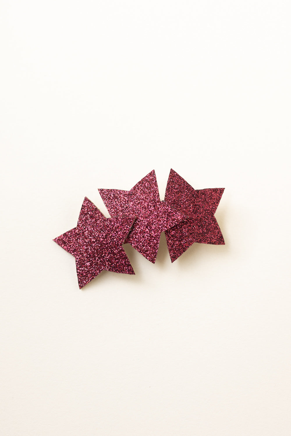 It's definitely pink season all year long! Have a beautiful look at this stunning and cute Three Star Glitter Clip with felt backing and alligator style barrette! Stand out in this adorable deep fuchsia statement piece!