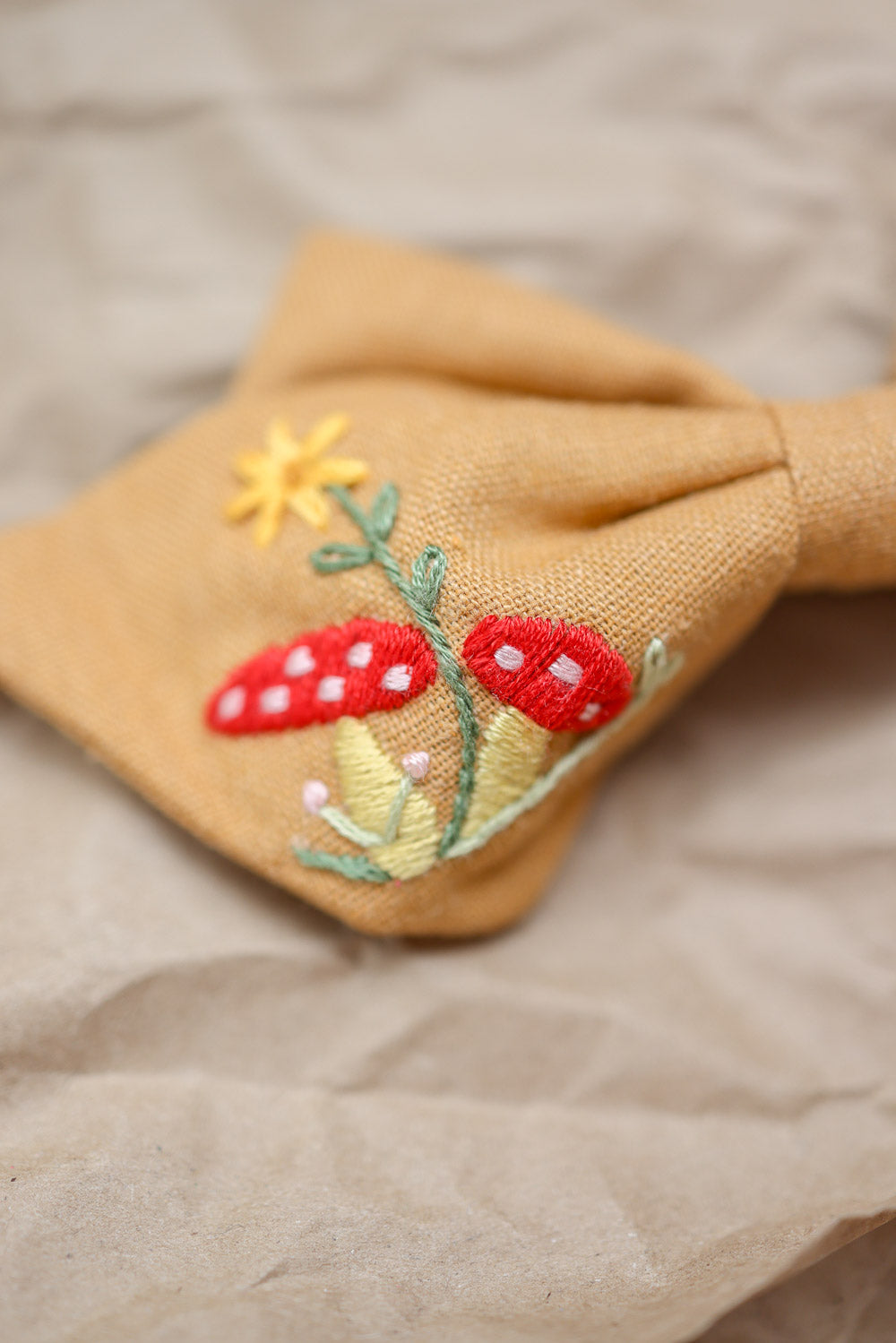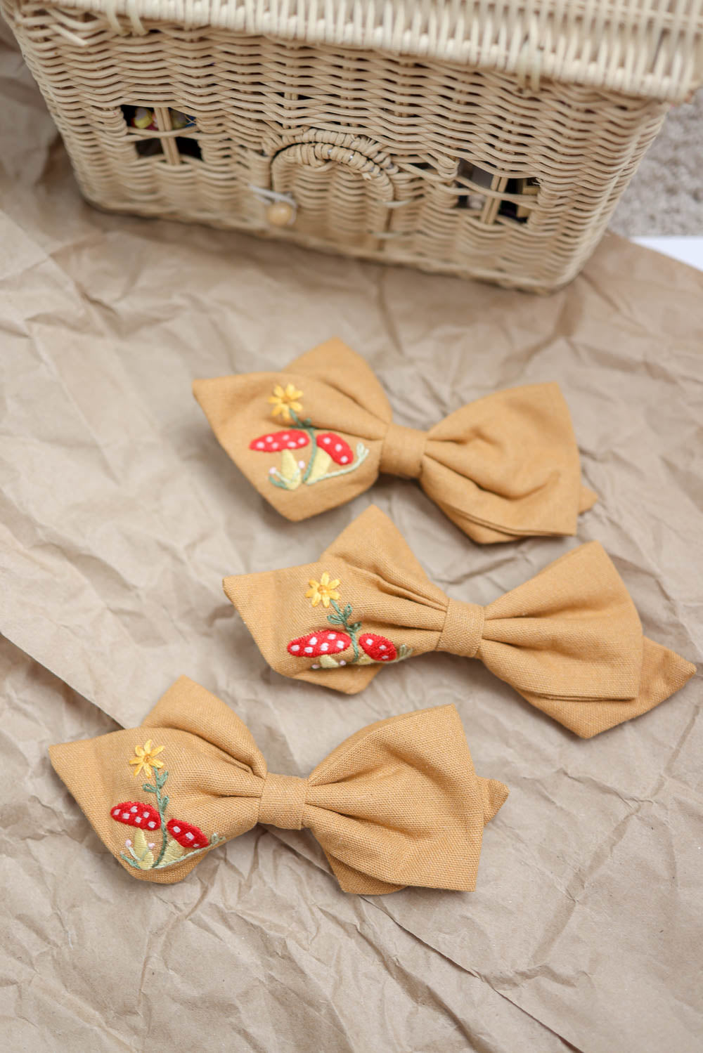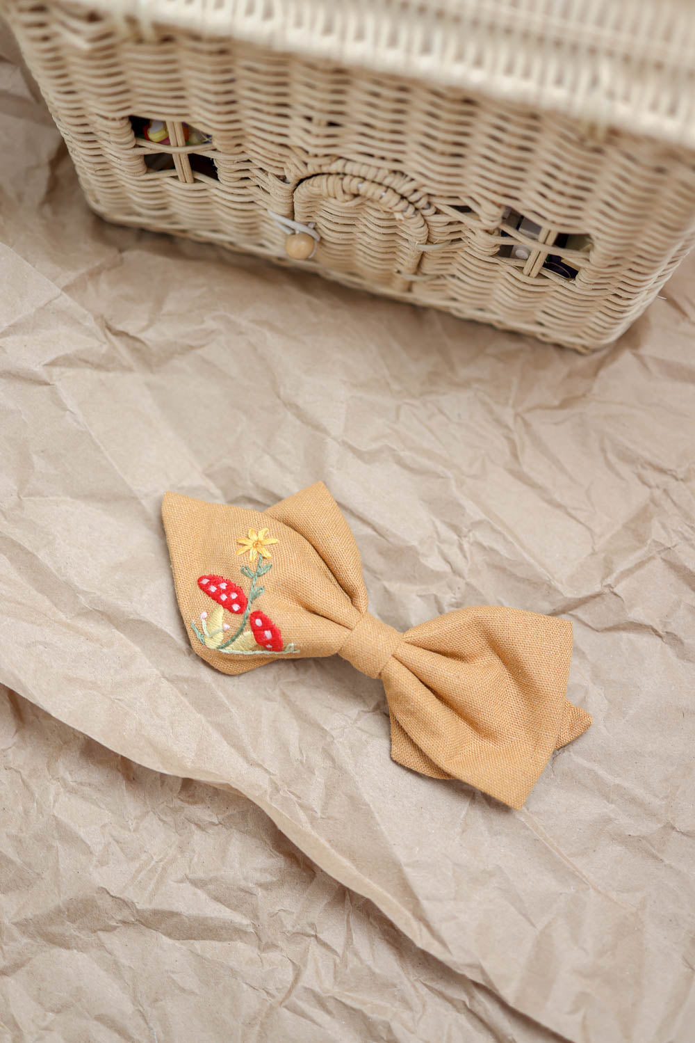 Wonderland Mushroom Embroidered Linen Bow Clip